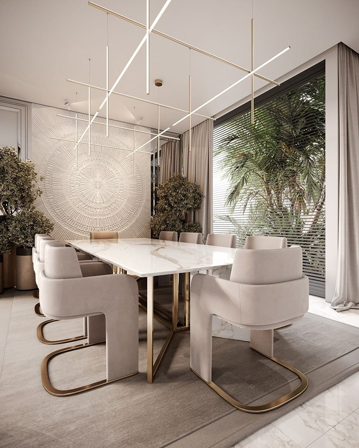 Особую роль при оформлении помещения, в данном стиле, играет освещение. Если в доме есть большие окна, то важно создать максимально возможное проникновение естественного света в комнату. Шторы должны быть легкими или прозрачными. Если дневного света проникает в помещение недостаточно, важно правильно организовать размещение источников искусственного света.